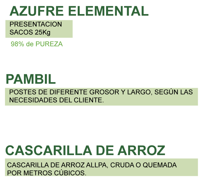 Allpa pone a disposición de los sectores productivos, opciones adicionales utilizados por los diferentes sectores. Ofrecemos azufre elemental ideal para la agricultura ORGANICA y para objetivos específicos.