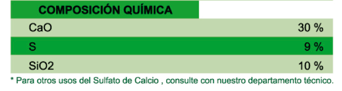 - Aporta de manera eficiente Calcio y Azufre al cultivo. Mejora la estructura del suelo permitiendo una mejor permeabilidad y manejo del agua .